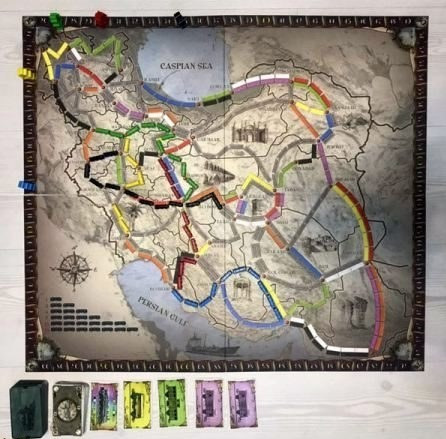 بازی فکری لوکوموتیو Ticket To Ride یک بازی رومیزی جذاب می باشد که برگرفته از بازی ticket to ride می باشد که شامل نقشه راه آهن های ایران است و از جذابیت بسیار بالایی برخوردار است. این بازی مناسب برای رده سنی بالای 8 سال است و 2 الی 5 نفر می توانند با همدیگر بازی کنند. بازی به این صورت می باشد که هر شخصی که بتواند بیشترین خطوط ریل را با رنگ خود به شهر های مقصد برساند امتیاز بیشتری خواهد گرفت . کیفیت قطعات بازی خوب است و دارای گیم بورد با کیفیت و بزرگ می باشد که افراد به راحتی میتوانند با آن بازی کنند.